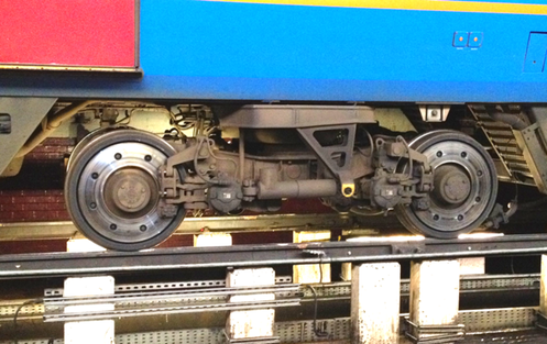 Bogies come in many shapes and sizes but it is in its most developed form as the motor bogie of an electric or diesel locomotive or an EMU. Here it has to carry the motors, brakes and suspension systems all within a tight envelope. It is subjected to severe stresses and shocks and may have to run at over 300 km/h in a high speed application. The following paragraphs describe the parts shown on the photograph below, which is a UK design.