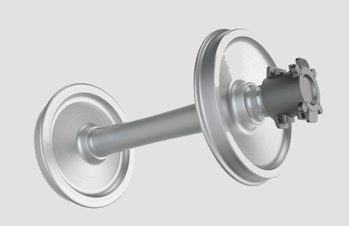 Figure 3: A typical railway wheelset with axleboxes. The wheels are pressed on to the axle and then the axleboxes are pressed on. Photo: Danobat.